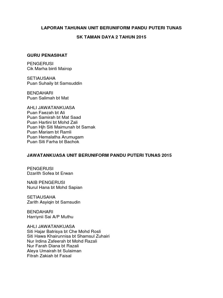 Tidak berlipat di dunia harapan abadi; Pandu puteri tunas digalakkan mengambil ujian lencana kecekapan individu : Pada mulanya, pandu puteri tunas dikenali dengan nama brownie. 13 ahli menerima anugerah pandu puteri tunas harapan ketua pesuruhjaya cawangan 2015 peringkat negeri.