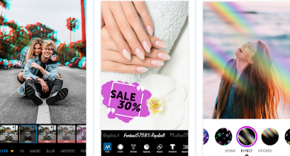 إضافة الأقنعة، وصنع الملصقات تصويرية، وإنشاء الإطارات و حواف، وإضافة الملصقات صغيرة، وكتابة أجزاء من النص، وقلب الصور. ◇ اضافة فلاتر ومؤثرات رائعه الى الصور. من بين ملايين تطبيقات التعديلات على الصور وصناعة الكولاج (دمج أكثر من صورة في صورة واحدة) يعد. تأثيرات الصور • حدّد صور السيلفي تخطيطياً باستخدام تأثيرات الرسم الأكثر إثارة.