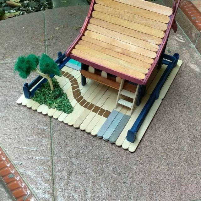 Gambar rumah adat yang terbuat dari stik es krim. Gambar di atas adalah contoh produk kami. Terimakasih bagi yang sudah menonton, nantikan.
